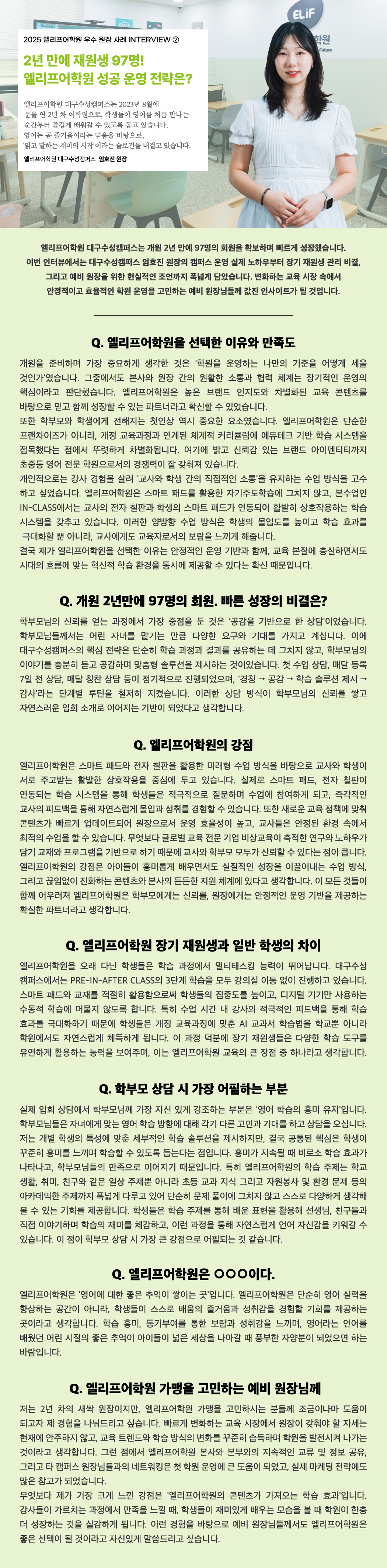 엘리프 어학원 우수 원장님이 전하는 캠퍼스 스토리